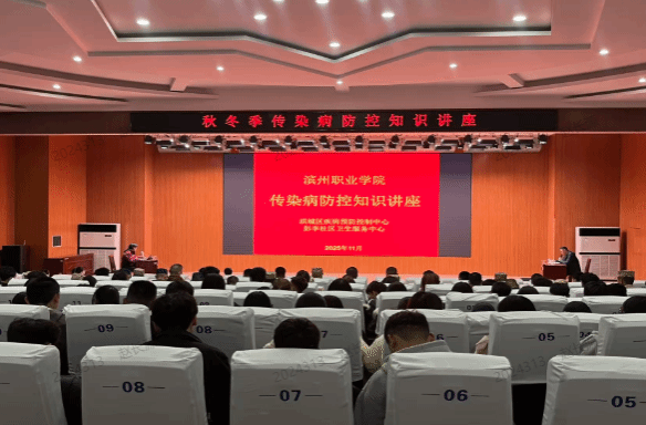 为提升秋冬季校园传染病群防群控能力,筑牢师生健康安全防线,11月4日下午,在图书楼学术报告厅成功举办“秋冬季传染病防控知识讲座”。本次讲座特邀滨城区疾控中心宋慧香、卓越、尹秋香三位专家作为主讲,各学院分管学生工作的副书记、全体辅导员、各院各部门健康联络员、学生代表共同参加了此次讲座。