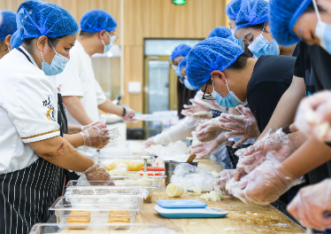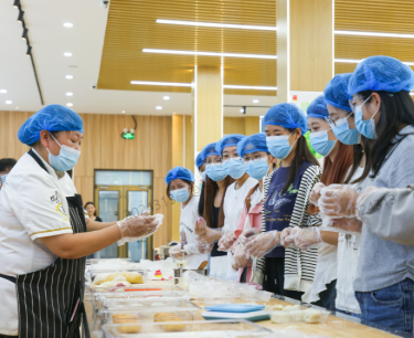 活动伊始,同学们在工作人员引导下完成消毒与准备工作。在专业面点师傅的悉心指导下,各小组有序投入到制作过程中。从精确称量饼皮与馅料,到巧妙包馅、搓圆,再到使用模具压制成型,同学们认真完成了每一步骤。月饼生坯送入烤箱烘焙期间,还穿插了中秋诗词接龙、家乡习俗分享等趣味互动,现场气氛活跃。烘焙结束后,同学们共同品鉴了新鲜出炉的月饼,并将成品包装,便于带回与家人分享。活动最后,全体人员合影留念,并彻底清理了操作场地。