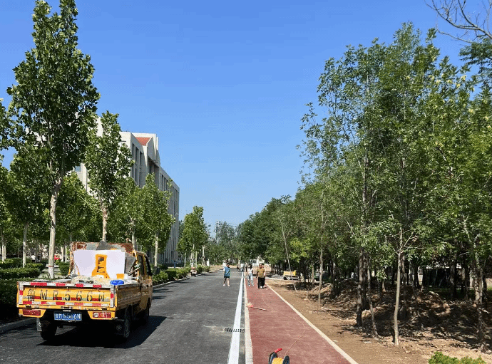 项目实施前,总务处对道路破损情况进行精准摸排,制定“分段施工、错峰作业”方案,将主要施工安排在暑假,最大限度减少对学生日常通行的干扰。施工中采用高标号沥青材料,规范完成路基平整、路面摊铺等工序,同步完善道路排水坡度及路边警示标识。改造后,道路平整度、通行舒适度大幅提升,彻底消除了雨天积水、夜间行走易绊倒等安全隐患。